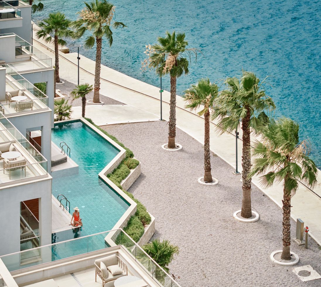 Met de schilderachtige achtergrond van de Adriatische zee en de iconische Lady of the Rocks als decor, is dit moderne strandresort een luxe toevluchtsoord omgeven door het prachtige fjordlandschap van Boka Bay en Kotor. Minimalisme wordt gecombineerd met ultracomfort en moderne elegantie en maakt dit tot een serene oase meteen aan de waterkant. Op ca. 30 minuten van de luchthaven van Tivat.