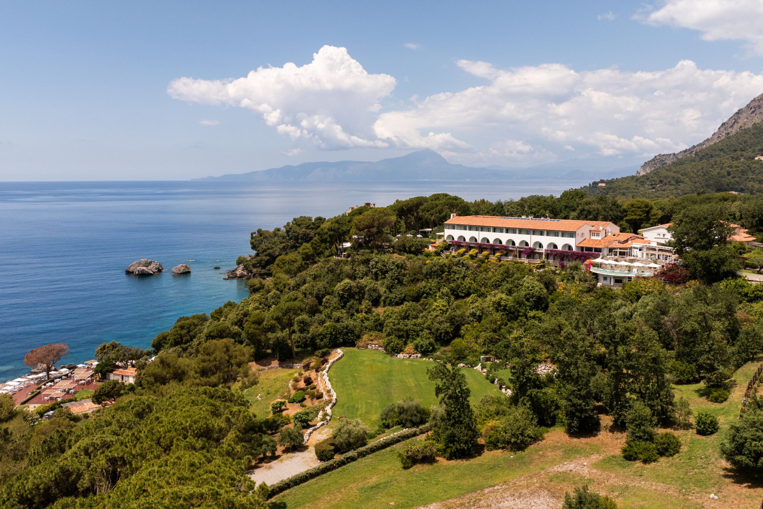 Elegant seizoensgebonden zwembad met panoramisch zonneterras uitgehouwen in de rotsen, op ca. 20 minuten van het prachtige Arcomagno strand. Privé keienstrand in het hotel, voorbehouden voor hotelgasten. Ruim aanbod aan actieve en culturele excursies in de omgeving. Uitstekende spa met verschillende kuren en massages. Drie restaurants, zijnde ‘Gli Ulivi’, ‘Il Carrubo’ en het prachtige ‘Le Lanterne’, drie mooie bars.