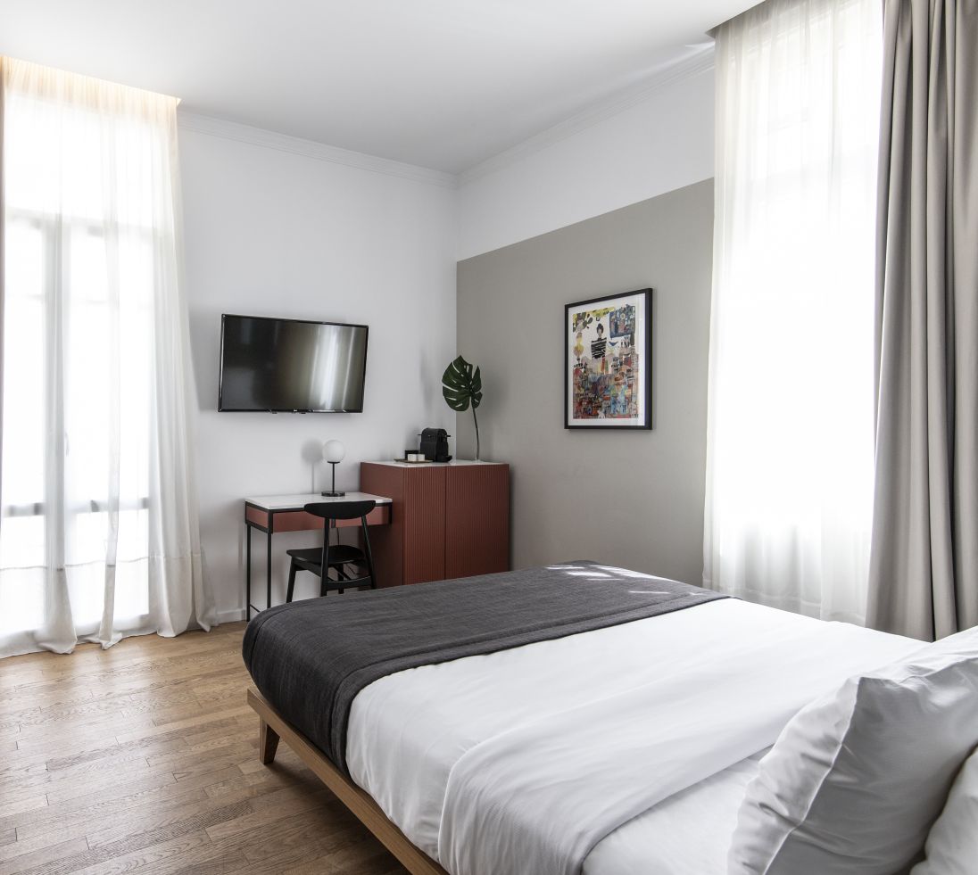 Large (20-24m²): Iets ruimere kamer met gelijke faciliteiten. Sommige met balkon en zicht op de straten.